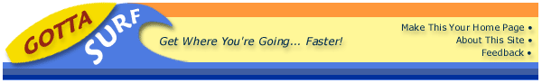 GottaSurf was created as a quick and easy way to access the top web resources from any location on the Internet. It is designed to be fast and easy to remember - no need to sign in or view advertising. Best of all, if you do use a customized personal page or email system (such as My Excite or Hotmail), it's just one click away.